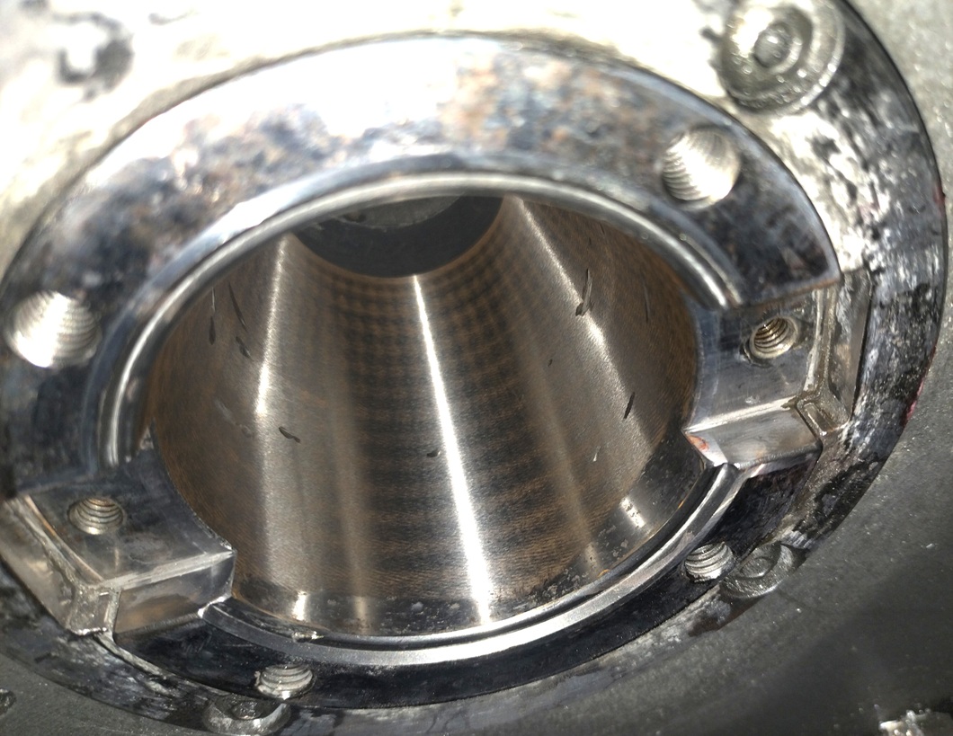 テーパ口元側にヘコミ傷が残りましたが、お客様は二面拘束BBT工具のみ使用されるとのことで