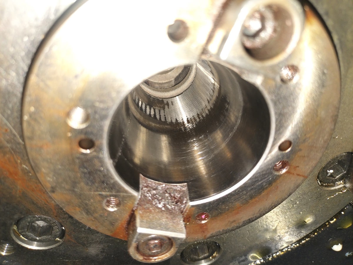 主軸テーパ奥のみアタリ(密着)があり、テーパ全体がかなり広がっている状態でした。