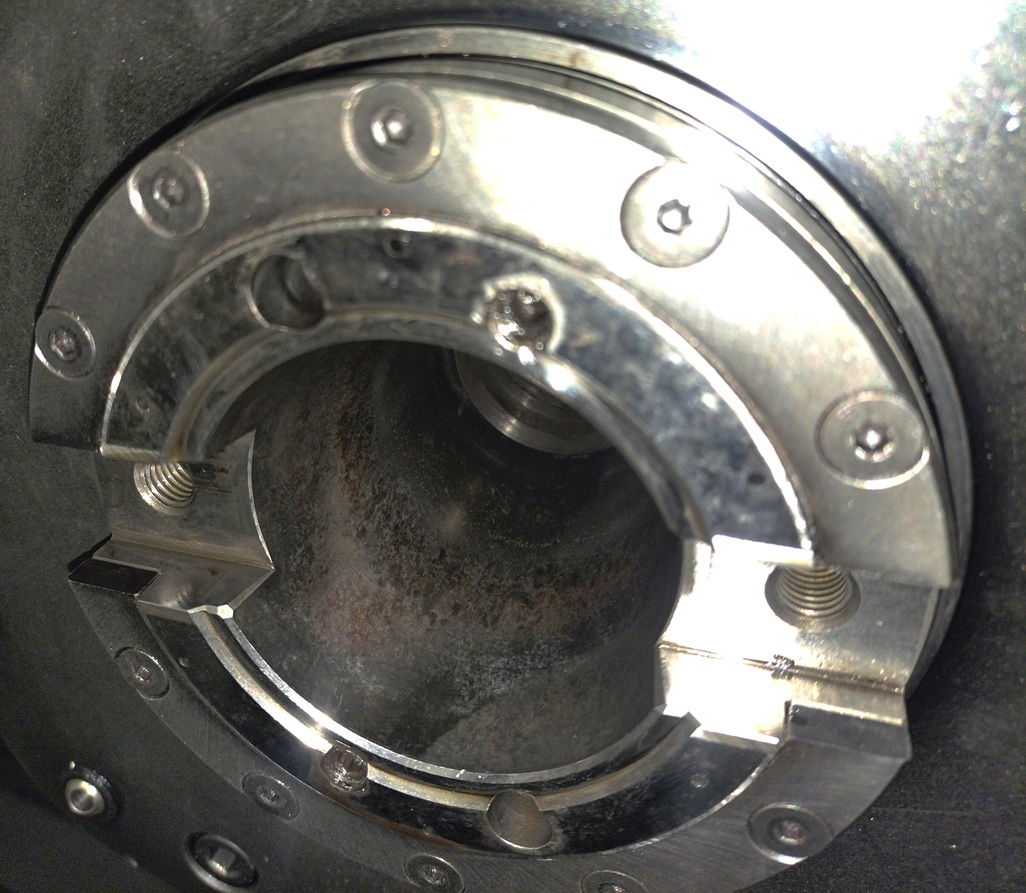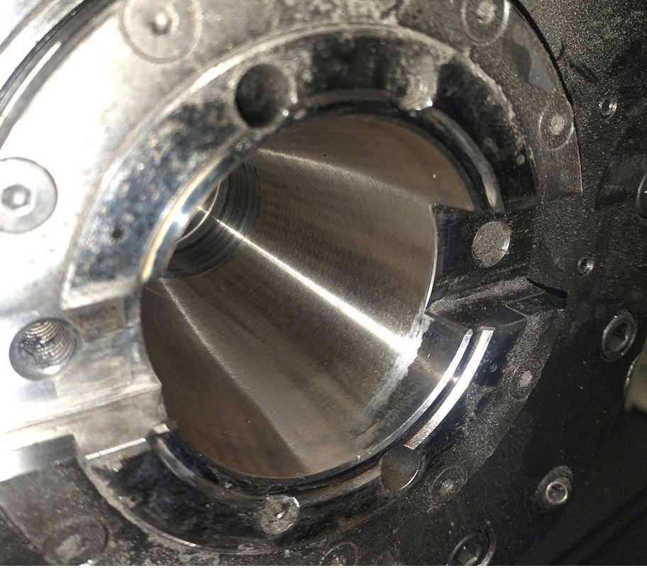 主軸テーパ口元(大径側)に非常に大きな楕円(ヘコミ傷)がある状態でした。